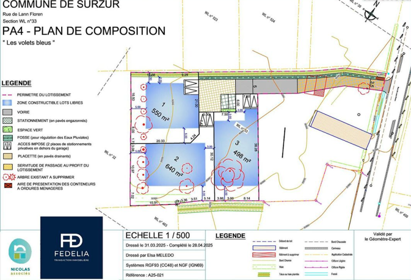 Surface des lots : 498 m² à 640 m²